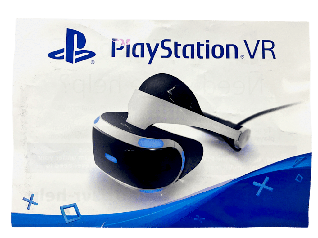 SONY PS4 VR Bundle – COMPLETE BUNDLE inside White Box with Instructions + Brand New Sealed PlayStation VR Games Demo Disc!. This preowned VR Bundle is in excellent condition and includes VR headset + processing unit + camera + all cables / leads + instructions + official VR cleaning cloth + new sealed PS4 VR Demo Disc inside white VR storage box. The VR headset is preowned with signs of use, but most other items appear as though they have had either none or very little use!