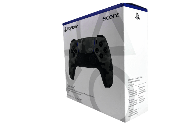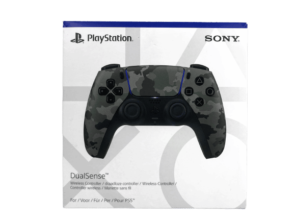 PlayStation 5 DualSense Wireless Controller – Grey Camo. Controller As New – complete with original box. Box has a small card tear on top of the box, but this is purely cosmetic, and the controller itself is as new.