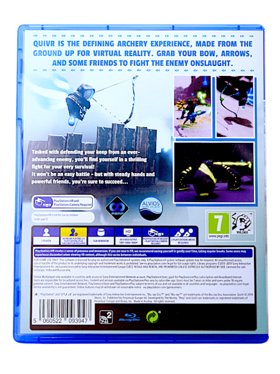 Mint condition & 100% complete with contents: QUIVER / QUIVR for SONY PlayStation 4 / PS4. Preowned, but in pristine condition and complete with case + cover + carded insert + game disc. A very tidy and complete collector’s item. Refer photographs.