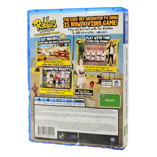 Rare children’s game in excellent Condition and Complete with Contents: Rabbids Invasion: The Interactive TV Show for SONY PlayStation 4 / PS4. This preowned game comes complete with case, cover, manual / booklet, and game disc.