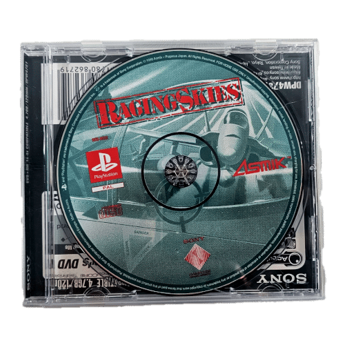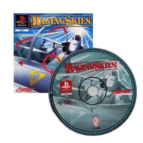Raging Skies for SONY PlayStation 1 / PS1. This preowned game disc is in in good playing condition with some very minor superficial markings / cosmetic scratches which do not affect game play in any way. Disc comes inside an empty blank case. Please note that the original case is NOT included.