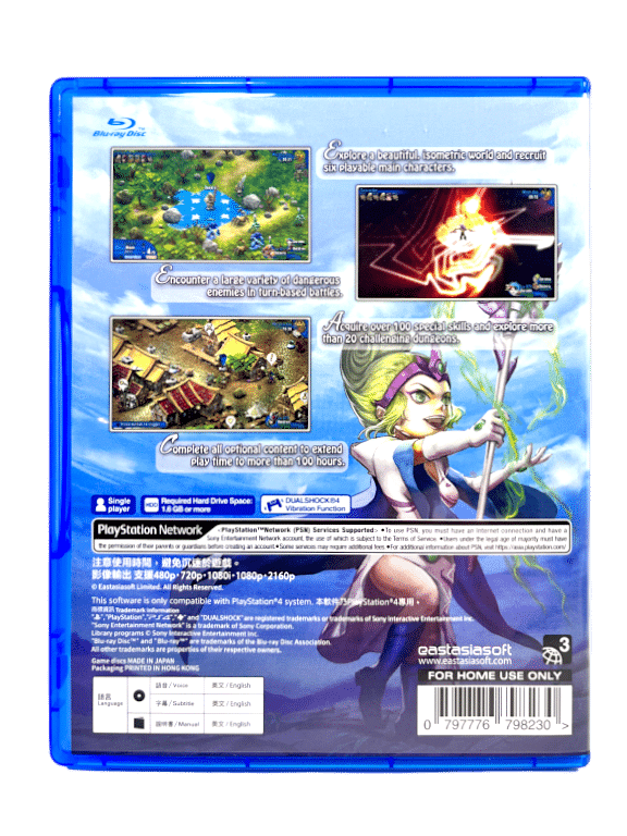 RARE PS4 GAME – AS NEW & 100% complete with contents: RAINBOW MOON for SONY PlayStation 4 / PS4. Preowned, but As New, and complete with case + cover + manual / booklet + game disc. A very tidy and complete collector’s item. Refer photographs.