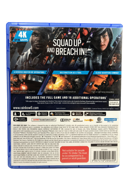 Excellent condition & 100% complete with contents: Rainbow Six Siege Deluxe Edition for SONY PlayStation 5 / PS5. This preowned game comes complete with case + cover + carded insert + game disc. **NB: Any single use paper voucher codes are assumed no longer valid, but these were promotional add-ons only and are not required for gameplay or completion. The FULL Tom Clancy’s Rainbow Six Siege Deluxe Edition game is included on the game disc. The disc is the authentic Deluxe Edition game disc.