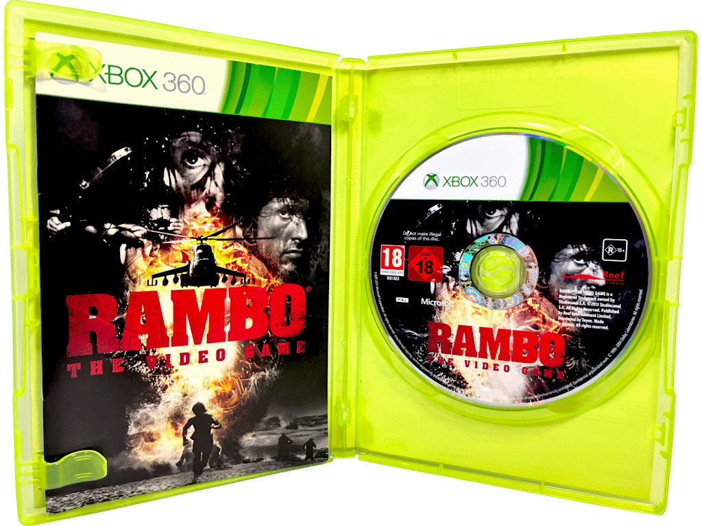 Excellent condition & 100% Complete with Contents: RAMBO The Videogame for XBox 360. This preowned game is in superb condition and comes complete with case, cover, manual / booklet, and game disc.