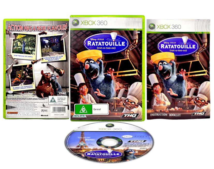 RATAOUILLE The Video Game. This preowned game is in very good condition with only faint disc surface imperfections. This game includes case + cover + game disc. Please note that the MANUAL IS NOT INCLUDED in this listing, but the game is self-explanatory, and the instructions are readily available online.