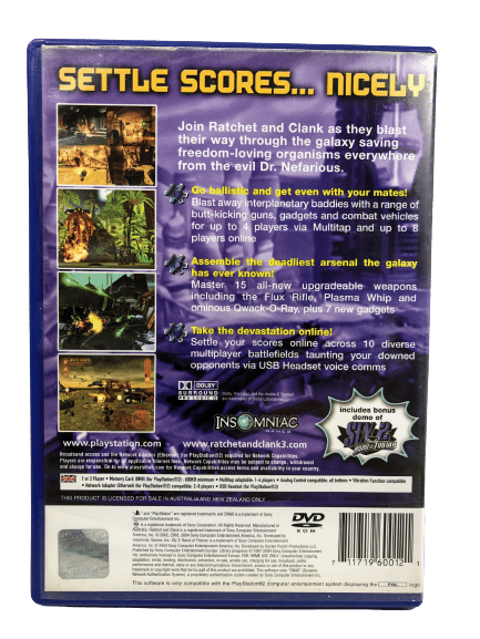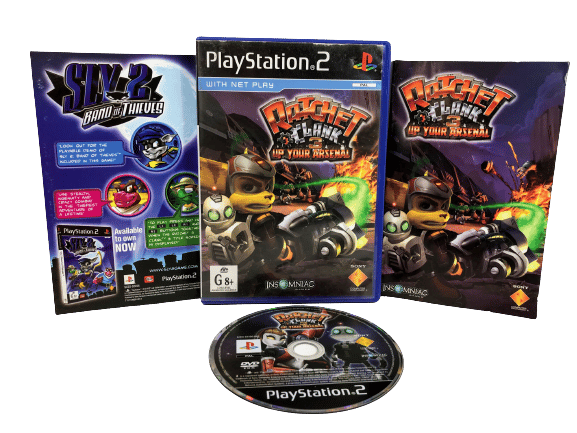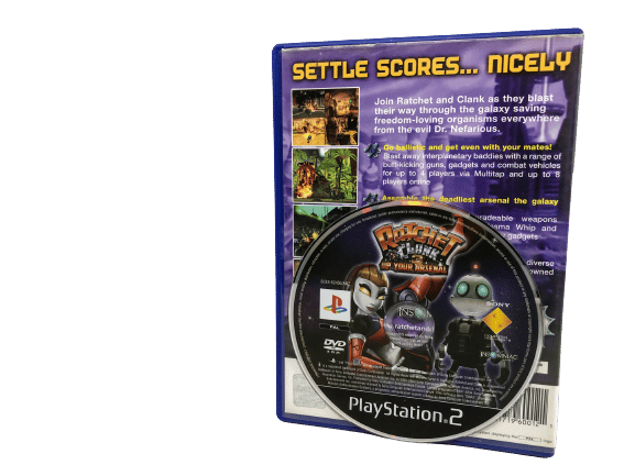 GENUINE ORIGINAL PRINT (Blue Case Edition) in excellent condition: Ratchet and Clank 3 Up Your Arsenal for SONY PlayStation 2 / PS2. This preowned game disc is in superb condition and includes case + cover. Light sunfade to front of cover, but his subtle, purely cosmetic, and the back and disc are bright and colourful. Please note that the MANUAL IS NOT INCLUDED in this listing, but the game is self-explanatory, and the instructions are readily available online.