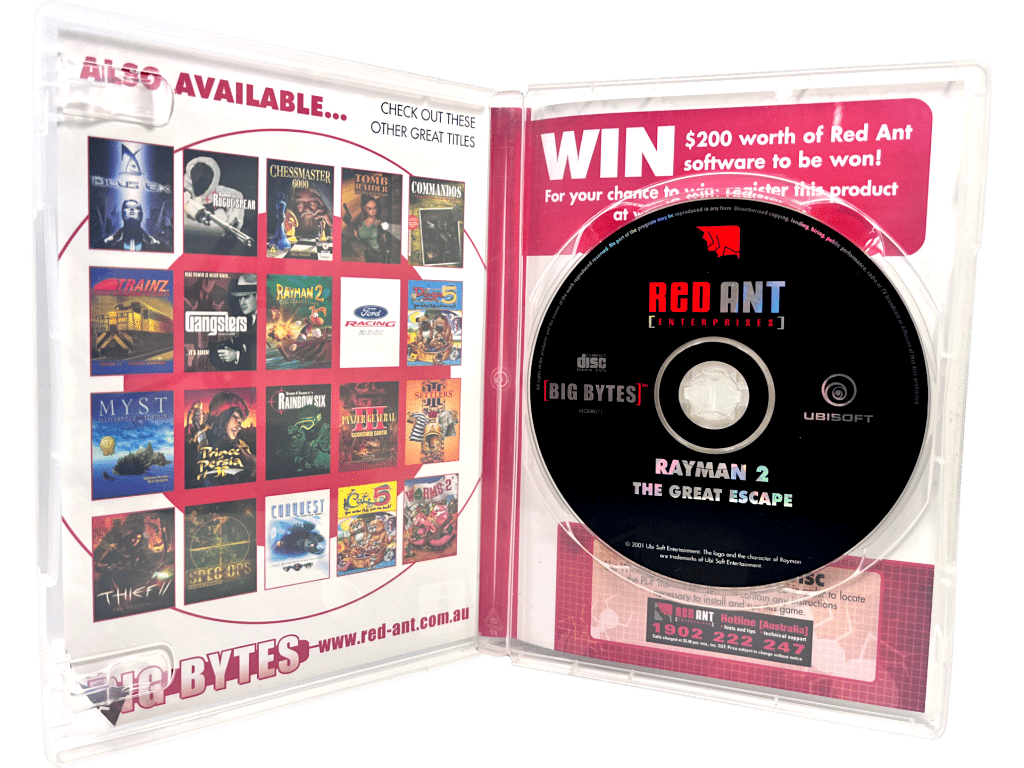 Rayman 2: The Great Escape for PC. This preowned game is in excellent condition and includes case + cover + game disc.