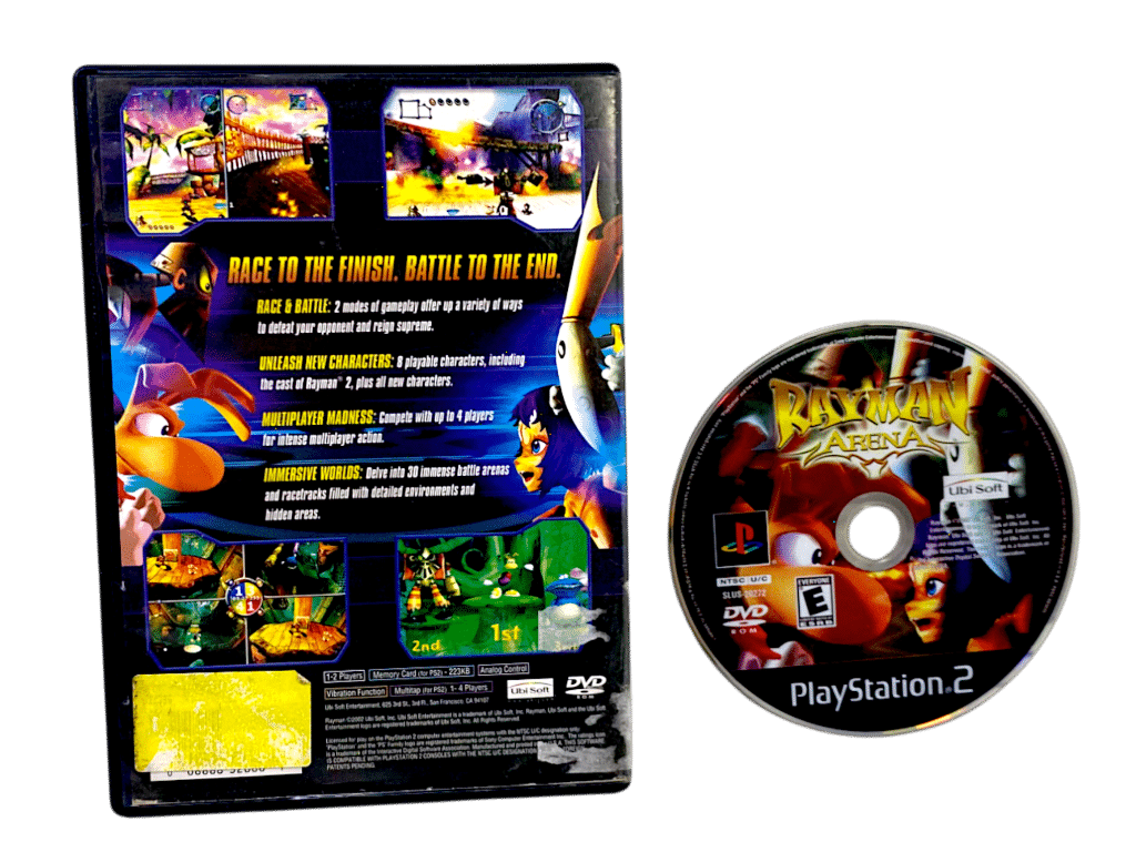 Rayman Arena (PS2) NTSC Region. NOTE: This is an NTSC REGION GAME so will only play in modded / chipped consoles, or in consoles from the USA / Canada. This preowned game is in good condition with mild surface imperfections only which do not affect gameplay or performance in any way. This game includes pictured case + cover/s + game disc/s