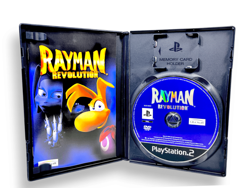 RARE FIND: GENUINE ORIGINAL PRINT BLACK EDITION in excellent condition & 100% complete with contents: RAYMAN Revolution for SONY PlayStation 2 / PS2. This preowned game is in superb condition and comes complete with case, cover, manual / booklet, and game disc. Each of the case + cover + manual are pristine, and the game disc is also very good with faint scratches only which do not hinder performance or gameplay in the slightest. Overall, a tidy and complete collector’s item.