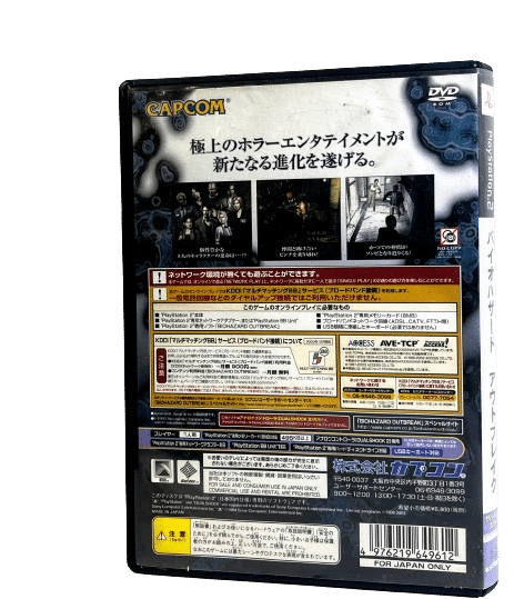 Excellent condition & 100% Complete with Contents: RESIDENT EVIL OUTBREAK / RESIDENT EVIL BIOHAZARD OUTBREAK for SONY PlayStation 2 / PS2. This preowned game comes complete with case + cover + manual / booklet + game disc. Front page of booklet has a tiny paper tear on the very bottom edge, but this is a minor imperfection, and the game disc is in mint condition. NOTE: THIS IS A JAPANESE GAME AND WILL ONLY PLAY IN JAPANESE PS2 CONSOLES, OR IN NZ PS2 CONSOLES WHICH HAVE BEEN MODIFIED TO PLAY JAPANESE NTSC-J REGION GAME DISCS.