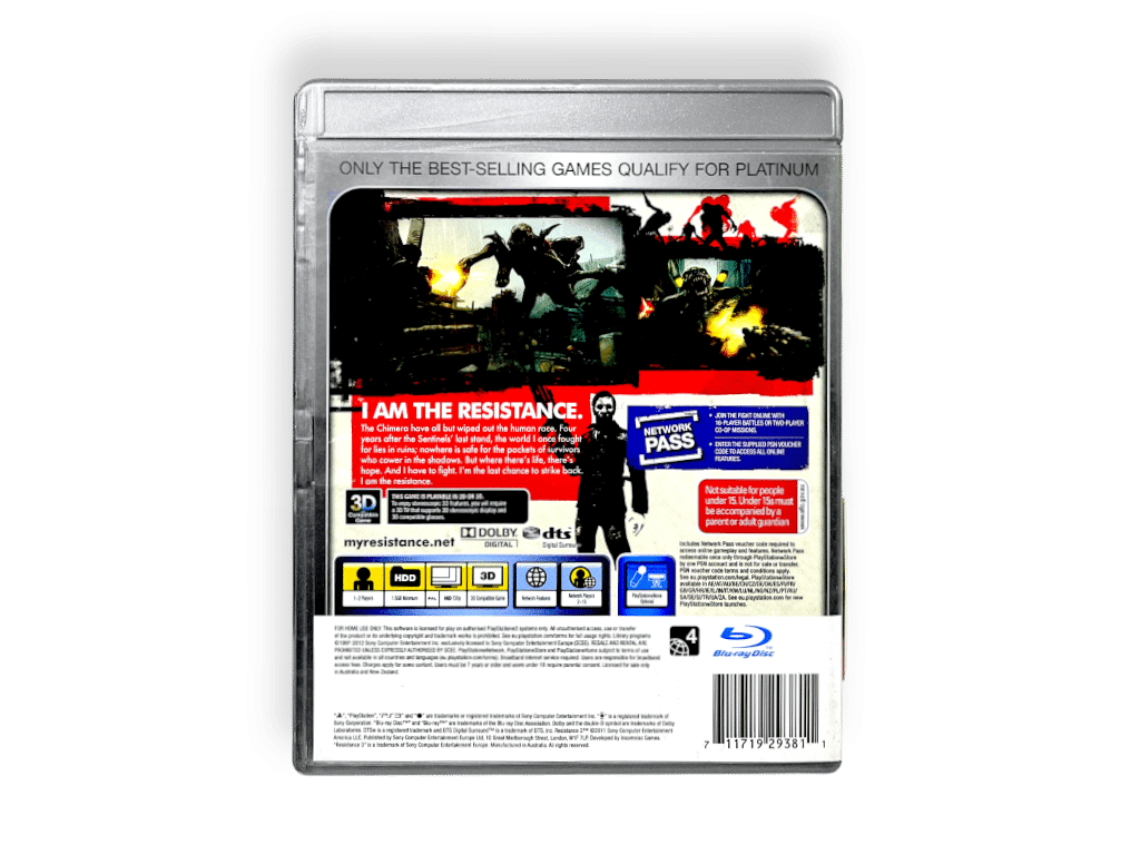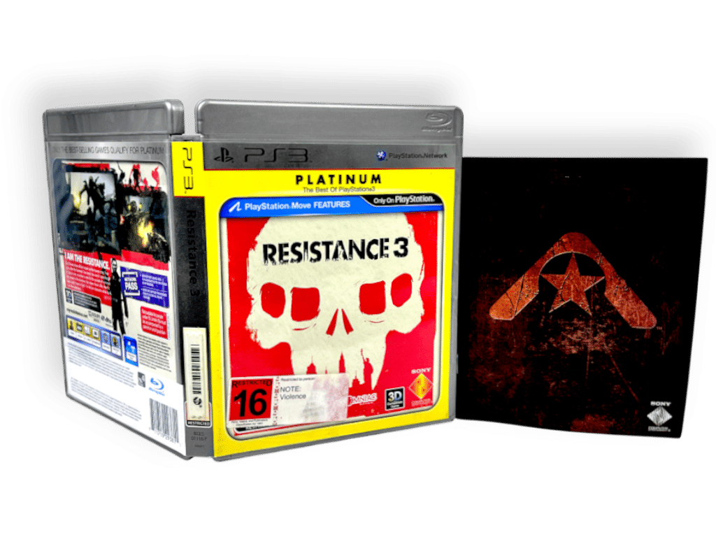 RARE GENUINE PLATINUM EDITION in excellent condition & 100% complete with contents: RESISTANCE 3 PLATINUM EDITION for SONY PlayStation 3 / PS3. This preowned game is in superb condition and comes complete with authentic PLATINUM EDITION case + cover + manual / booklet + game disc. This Official NZ Edition included an Original Print disc inside the Platinum case, so is complete with it’s matching disc which was bundled and sold new in stores. A tidy and complete collector’s item.