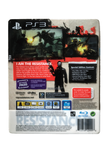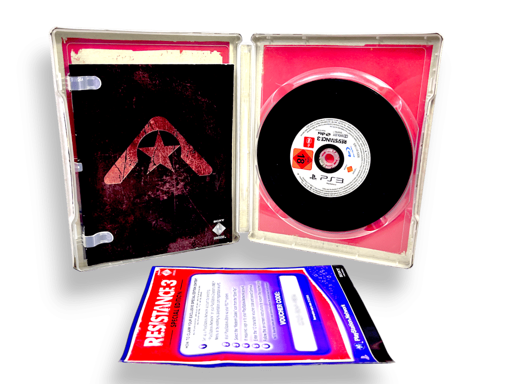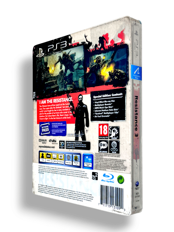 Resistance 3 LIMITED SPECIAL EDITION / RESISTANCE 3 STEEL COLLECTOR’S EDITION for SONY PlayStation 3 / PS3. This preowned authentic Limited Steel Case Collector’s Edition is in excellent condition & comes 100% complete with: