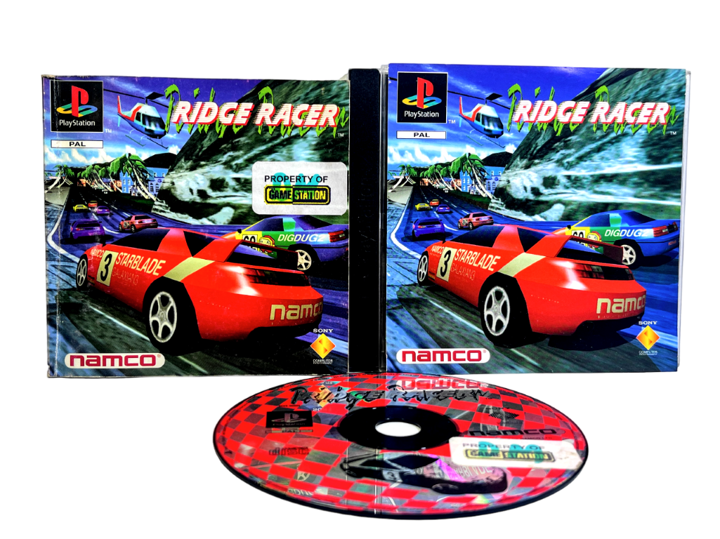 RIDGE RACER The Original SONY PlayStation 1 game. This preowned game is in good condition and includes CD case + game front cover + manual / booklet + game disc. Does not include back cover. Case is a CD case, so contents sit outside the case. We will replace the case with a larger case if one of these is traded in before the game sells.