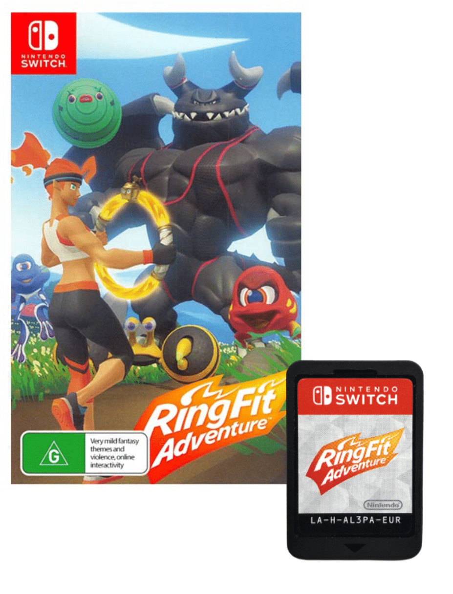 Ring Fit Adventure for Nintendo Switch. This preowned game cartridge is in excellent condition and comes inside a miniature plastic container. Please note that the case is NOT included.