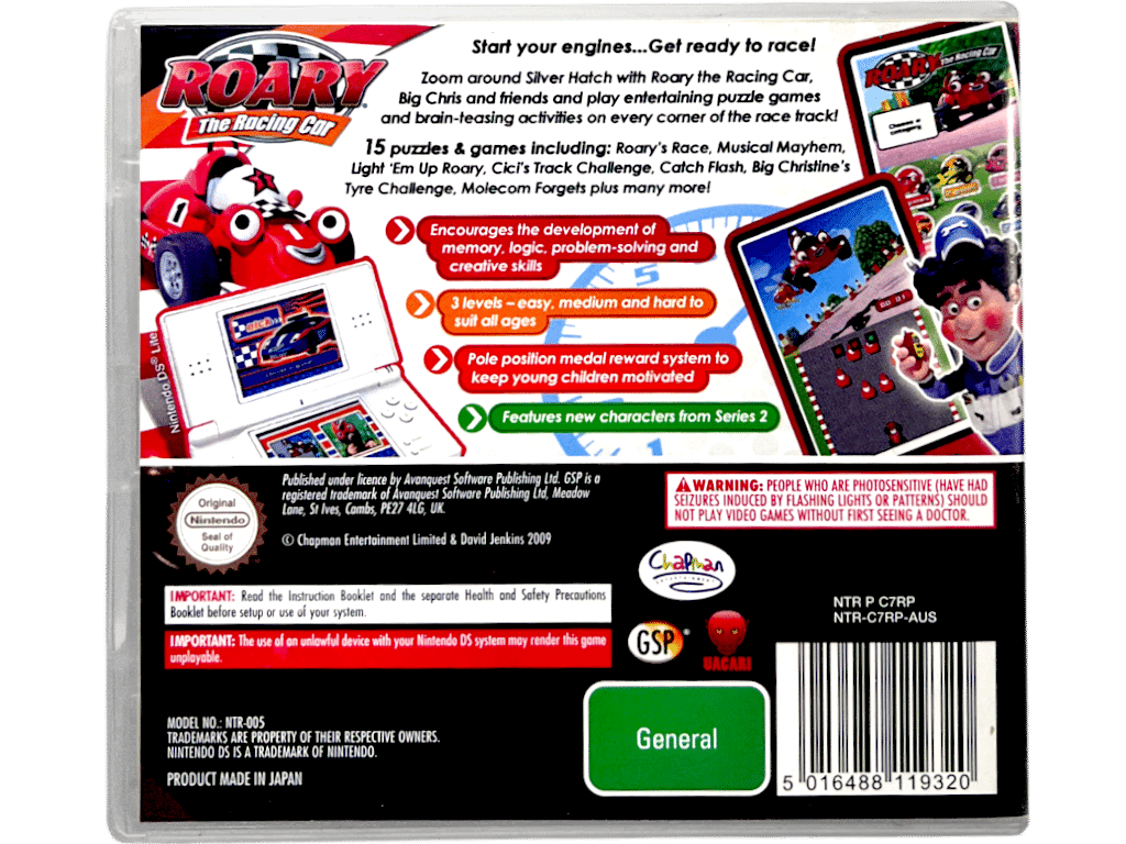 Excellent condition & 100% complete with contents: ROARY THE RACING CAR / RORY THE RACING CAR for Nintendo DS. This preowned Nintendo DS game is in excellent condition and comes complete with case + cover + manual / booklet + game cartridge.