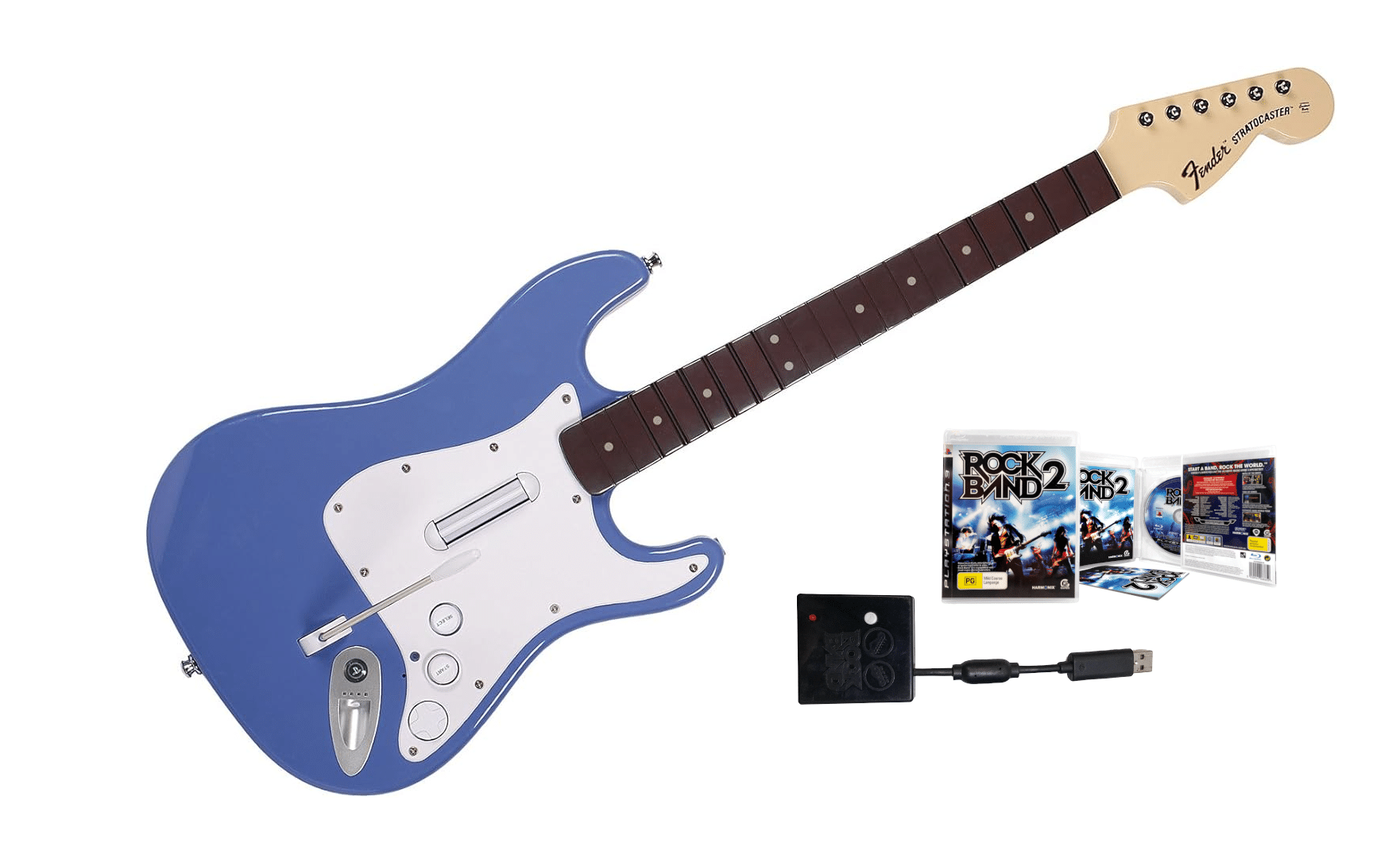 ROCK BAND 3 BLUE Fender Stratocaster Guitar + Game Bundle (PS3 – WIRELESS)