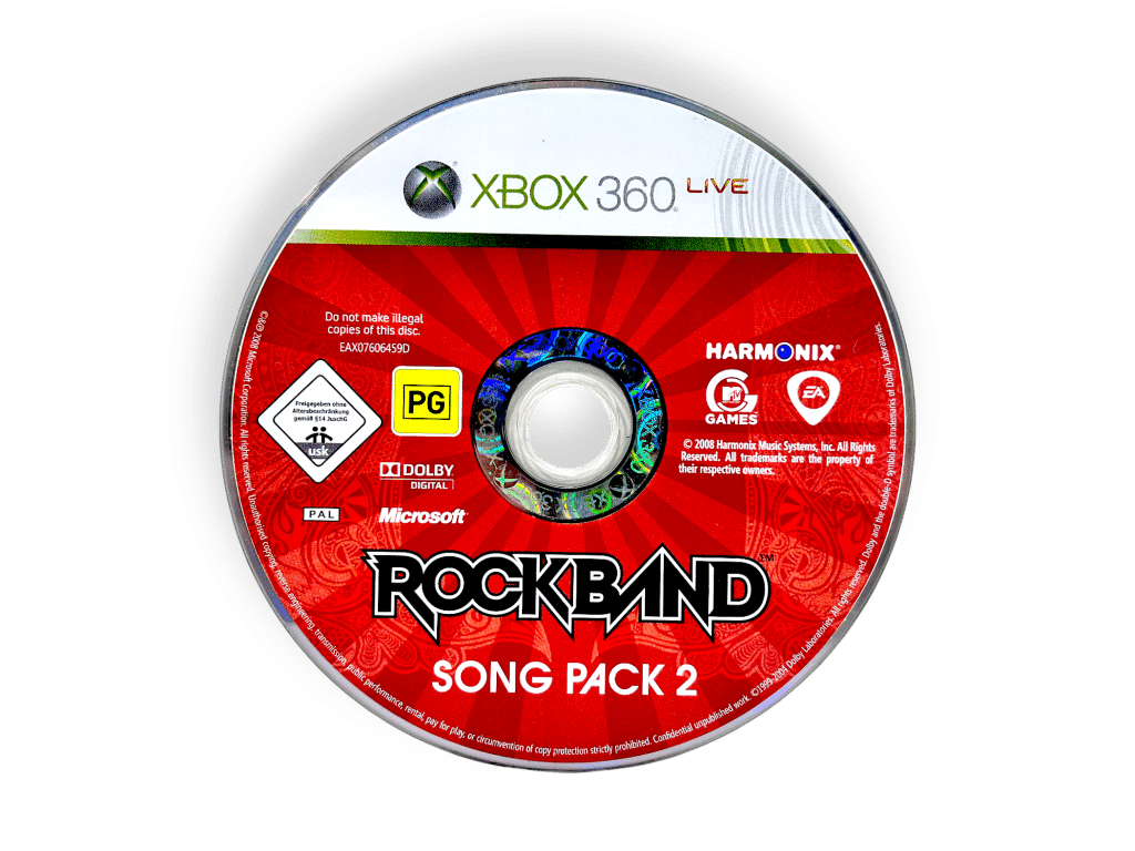 Rock Band: Song Pack 2 (Xbox 360) GAME ONLY. This preowned Xbox 360 game disc is in very good condition with only the mildest of disc surface imperfections. This disc comes inside an empty blank case. Please note that the original case is NOT included.
