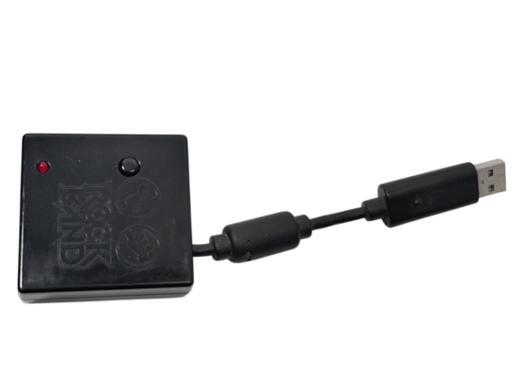 OFFICIAL ROCKBAND Wireless Dongle / ROCK GAND Wireless Guitar Receiver for PS2 & PS3 (Rock Band USB Wireless Guitar Dongle MODEL VFR8221512 Fender Stratocaster) USB Adapter / USB Dongle for SONY PlayStation 3 / PS3 and SONY PlayStation 2 / PS2. This genuine preowned Rock Band product is in very good condition, with light cosmetic imperfections from use only. Guitar not included. Dongle / Adapter / Wireless Receiver only.