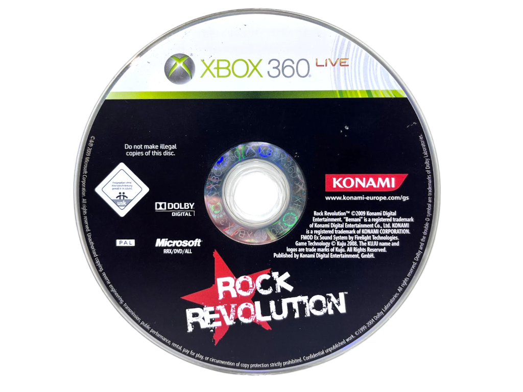 3. Rock Revolution (Xbox 360). This preowned game disc is in very good condition with only mild disc surface imperfections and comes inside an empty blank case. Original case not included.