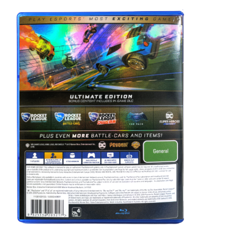 RARE FIND: GENUINE LIMITED ULTIMATE EDITION in excellent condition and complete with authentic Ultimate Edition Game Disc (with BONUS ULTIMATE EDITION CONTENT ON THE DISC): ROCKET LEAGUE ULTIMATE EDITION for SONY PlayStation 4 / PS4. This preowned game is in superb condition and comes complete with case, cover, and ULTIMATE EDITION Game disc (featuring the full Rocket League game PLUS BONUS CONTENT on the disc).