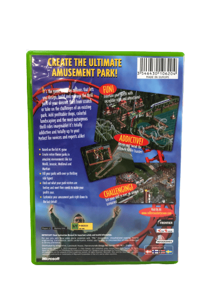 Good Condition & 100% complete with Manual: ROLLERCOASTER TYCOON for Original Xbox. This preowned game comes complete with case, cover, manual / booklet, and game disc. Some light superficial markings / cosmetic scratches, but these are very minor imperfections which do not affect game play in any way.
