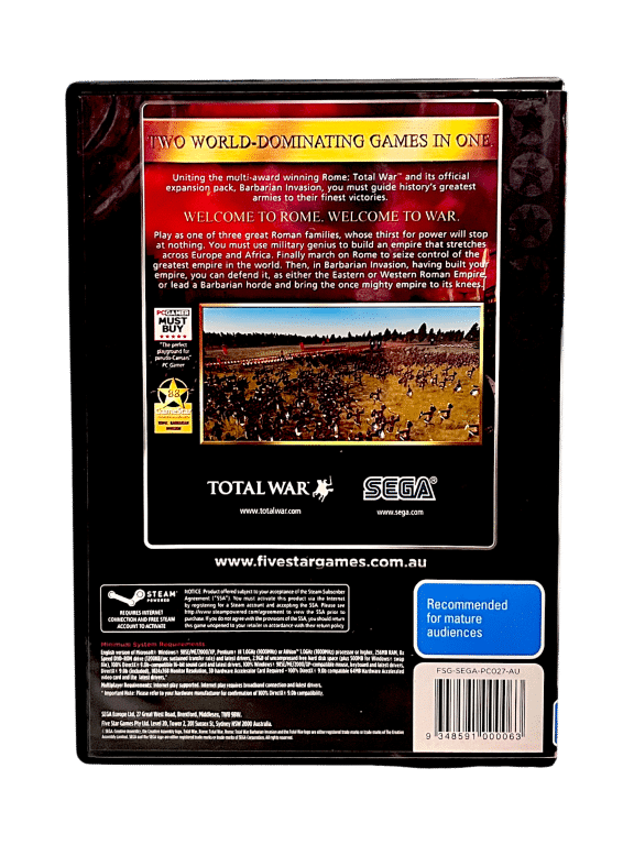 Rome: Total War – Gold Edition (PC). This pre-owned PC game is in excellent condition and includes: