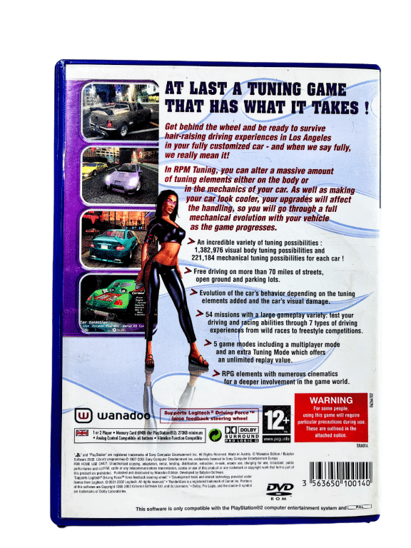 Rare Driving & Racing Game in Excellent Condition & 100% complete with contents: RPM TUNING for SONY PlayStation 2 / PS2. This preowned game is in superb condition and comes complete with case + cover + manual / booklet + game disc. Disc excellent, with the faintest of superficial markings / cosmetic scratches visible only when I was holding the disc up to my nose under reflective light. Overall, a tidy and complete collector’s item.