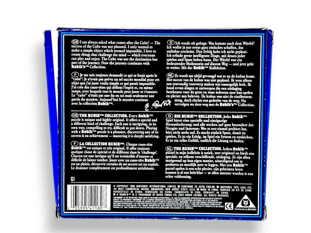 - Vintage Collectible: A piece of the official Rubik’s puzzle line from the early 1990s.