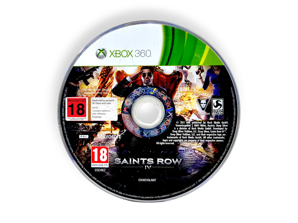 SAINT’S ROW IV / Saints Row 4 for Xbox 360. This preowned game disc is in very good condition and comes inside an empty blank case. Please note that the original case is NOT included.