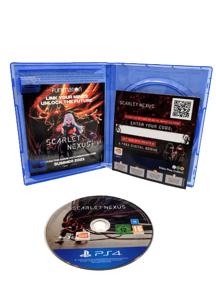 SCARLET NEXUS for SONY PlayStation 4 / PS4. This preowned game is in excellent condition and comes complete with case + cover + carded inserts + game disc. Paper cover has some gentle waves, but this is purely cosmetic and the internal contents are superb.