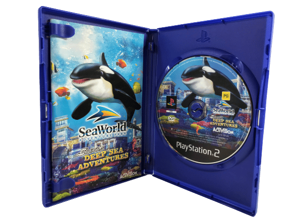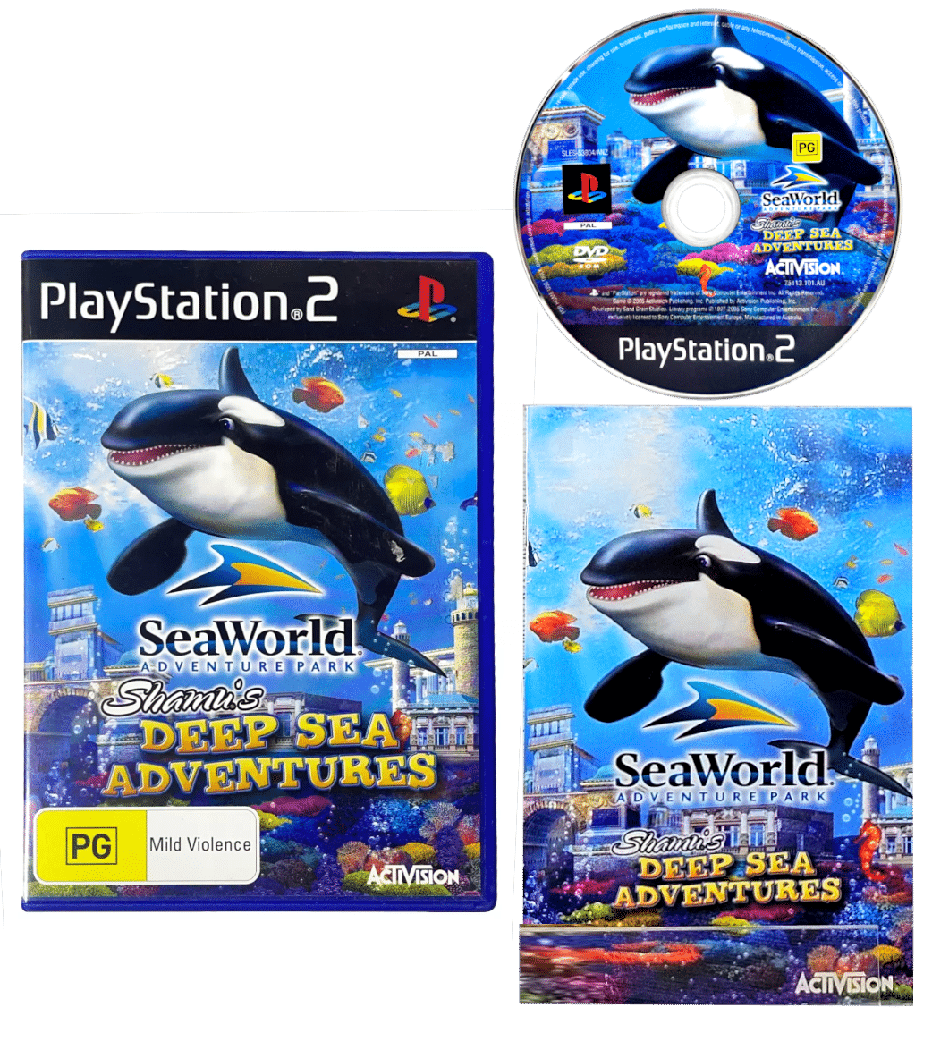 The Official NZ Edition (PAL Region with PG Classification embedded in the cover): SeaWorld Adventure Parks Shamu’s Deep Sea Adventures for SONY PlayStation 2 / PS2. This preowned game includes case + cover + game disc. Some light superficial markings / cosmetic scratches, but these are very minor imperfections which do not affect game play in any way. Please note that the manual is NOT included in this listing, but the game is self-explanatory, and the instructions are readily available online.