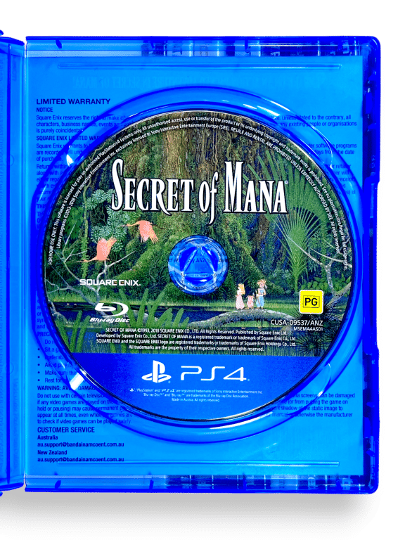 GENUINE NZ/AUS Edition in Excellent Condition & 100% complete with contents: SECRET OF MANA for SONY PlayStation 4 / PS4. This preowned game is in superb condition and comes complete with case + authentic New Zealand cover with the signature PG classification embedded in the cover art + game disc.