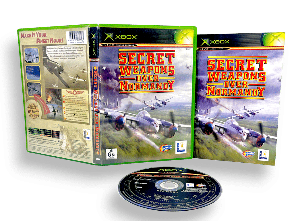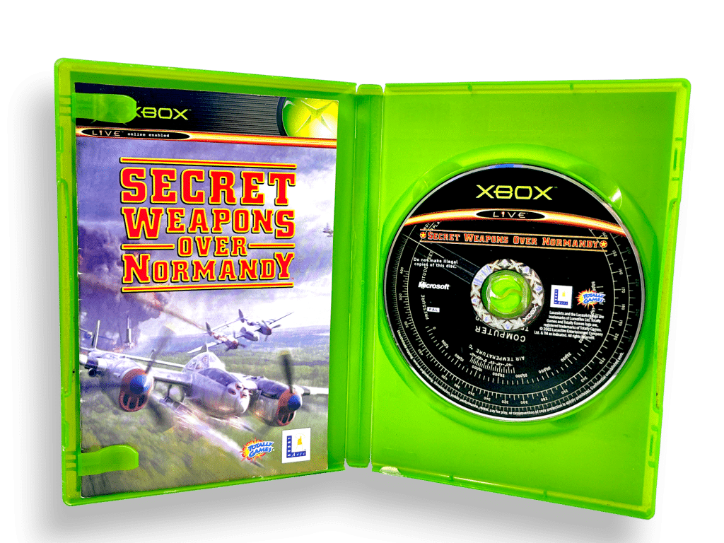 Secret Weapons Over Normandy (Xbox). This preowned Original Xbox game is in good condition with mild disc imperfections only and includes pictured case + contents.