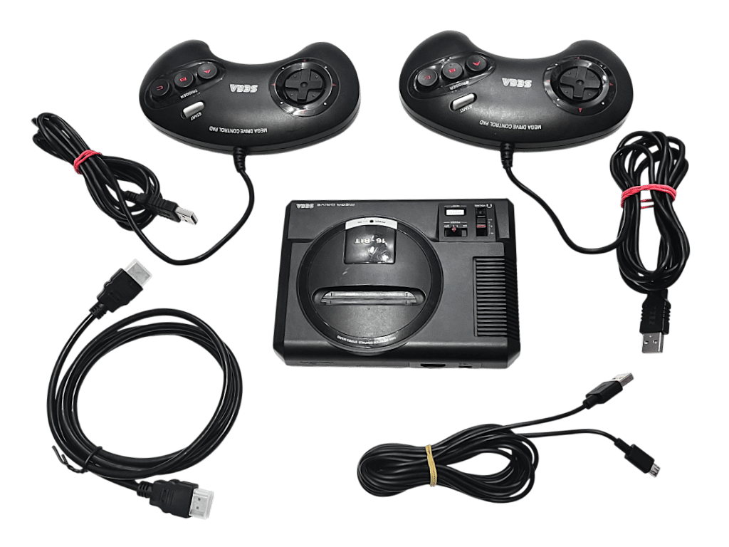 Sega Mega Drive Classic Mini Game Console (Black) – complete with 2 x GENUINE SEGA Controllers + Micro USB power lead + HDMI lead. A complete bundle – ready to play! This preowned Genuine SEGA Gaming Console is in excellent condition and perfect working order, as are all accompanying accessories and leads. Refer photographs.