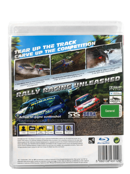 RARE PS3 Driving & Racing game in Excellent Condition & 100% Complete with Contents: SEGA RALLY for SONY Playstation 3 / PS3. This preowned game is a tidy collector’s item, complete with case, cover, manual / booklet, and game disc. Genuine UK print with the signature 3 classification embedded in the cover art in place of the picture G.