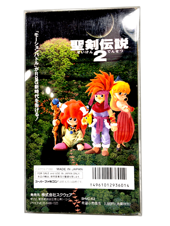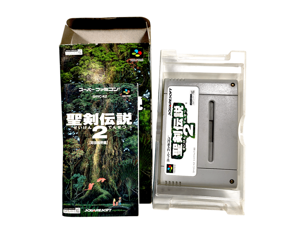 Seiken Densetsu 2 (Super Famicom – CIB, Japanese). This pre-owned Japanese Super Nintendo Entertainment System SNES game is in excellent condition and complete with original box as pictured. A lovely collector’s item. Note that this is a Japanese game, so it will not play in English.