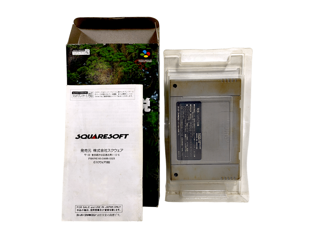 Seiken Densetsu 2, known internationally as Secret of Mana, is a beloved action RPG combining real-time combat with co-operative multiplayer. This complete Japanese Super Famicom release is highly collectible, valued for its artwork, music, and influence on the action RPG genre.