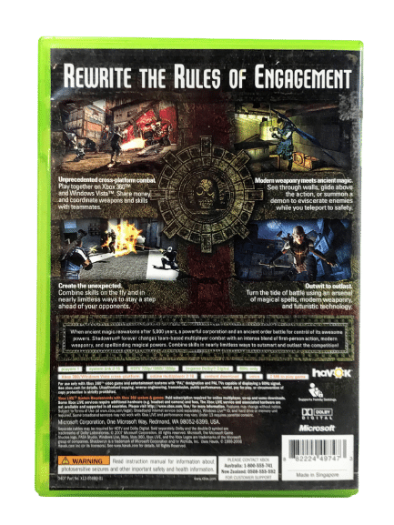 FASA Studio, the creative minds behind “MechWarrior®” and “Crimson Skies®,” are back with “Shadowrun,” the new multiplayer first-person shooter (FPS) based on the much-beloved role-playing game (RPG) franchise. “Shadowrun” propels team-based combat into a new dimension with a revolutionary blend of modern weaponry and ancient magic. Up to 16 players can battle for control of this new world through Xbox 360-to-Windows Vista online compatibility. In “Shadowrun” players vie for supremacy in a constantly evolving battlefield where advanced technology and ancient magic provide an unprecedented and high-velocity tactical action experience.