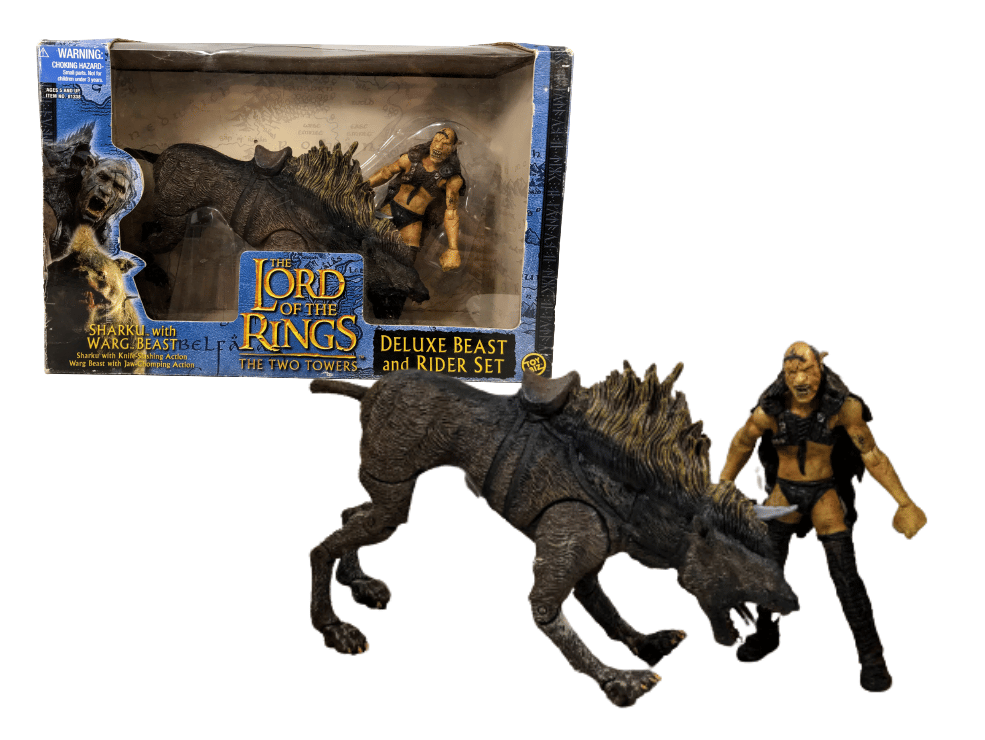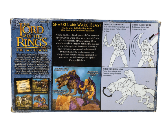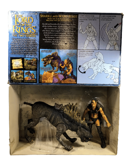 RARE FIND: AUTHENTIC January 2003 Release with Contents still NEW inside original box: Sharku with Warg Beast. Box shows card wear consistent with age and storage, but both figures are still new – complete with internal plastic mounts. Refer photographs.
