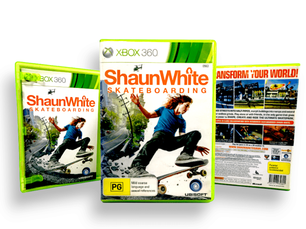 SHAUN WHITE SKATEBOARDING for XBox 360. This preowned game is in good condition with very mild markings and scratches only which do not affect gameplay in any way. This game includes case + cover + game disc. Please note that the MANUAL IS NOT INCLUDED in this listing, but the game is self-explanatory, and the instructions are readily available online.
