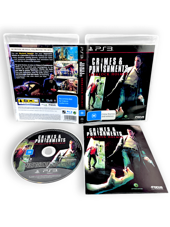 Rare & Collectible PS3 Game – and the authentic NZ print – in excellent condition & 100% complete with contents: SHERLOCK HOLMES CRIMES AND PUNISHMENTS for SONY PlayStation 3 / PS3. This preowned game is in superb condition and comes complete with case + genuine NZ cover (with the signature “M” classification embedded in the cover art) + manual / booklet + game disc.