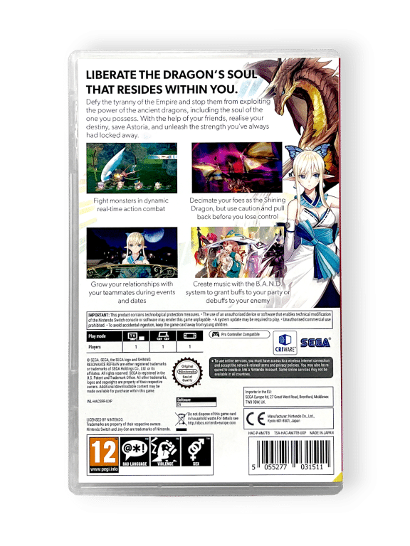 Unleash the power of dragons in Shining Resonance Refrain for Nintendo Switch — a beautifully remastered JRPG from SEGA’s beloved Shining series. Take control of Yuma Ilvern, a young man who harbors the soul of the Shining Dragon within him, as you and your companions battle the Empire to prevent their plans for domination. Featuring real-time combat, lush anime-style visuals, and a deep musical motif where characters wield “Armonics” weapons that resonate with melodies of power, this definitive edition includes all previously released DLC and an all-new “Refrain Mode,” introducing extra storylines and playable characters. A must-have for fans of classic Japanese role-playing adventures with action-driven combat and emotional storytelling.