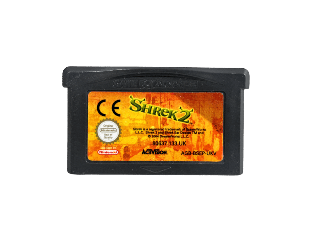 SHREK 2 GAME + MANUAL for Nintendo Game Boy Advance (Gameboy Advance). This preowned GBA cartridge is in good condition, as is its included manual / booklet. Box not included.
