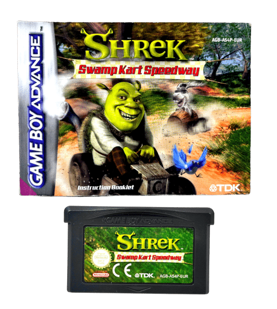 SHREK: Swamp Kart Speedway (GBA). This preowned Nintendo DS game cartridge is in excellent condition and includes its game manual. Please note that the original case is not included.