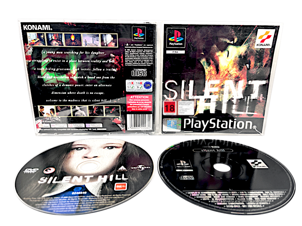 SILENT HILL The Original Game DEMO – in the original print (“Black” Label) for SONY PlayStation (PS1. This preowned genuine original PlayStation DEMO release is in superb condition and includes original case + covers (both front and back cover slips) + Silent Hill DEMO game disc. The only imperfection I could find was on the bottom corner of the front plastic panel of the case where I found a tiny plastic crack – although we are happy to replace the front panel at the buyer’s request. The original panel has been retained on the case for collectibility. On the reverse side of the front paper cover slip (the white side – back of paper slip) I spotted some tiny yellow splotches, but these are not visible from the front. One of the more collectible games for original PlayStation. Also included is a Silent Hill Movie DVD Disc. Refer photographs. Note that this is Silent Hill the demo and not the full game on the disc.