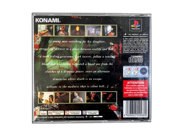 Mint condition & 100% complete with contents: SILENT HILL The Original Game – in the original print (“Black” Label) for SONY PlayStation (PS1. This preowned genuine original PlayStation release is in pristine condition – a tidy and complete collector’s item. The only imperfection I could find was on the bottom corner of the front plastic panel of the case where I found a tiny plastic crack – although we are happy to replace the front panel at the buyer’s request. The original panel has been retained on the case for collectibility.