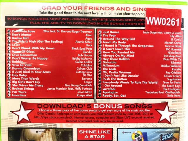 - Bundle contains Lips Number One Hits and one (1) Xbox 360 wireless microphone