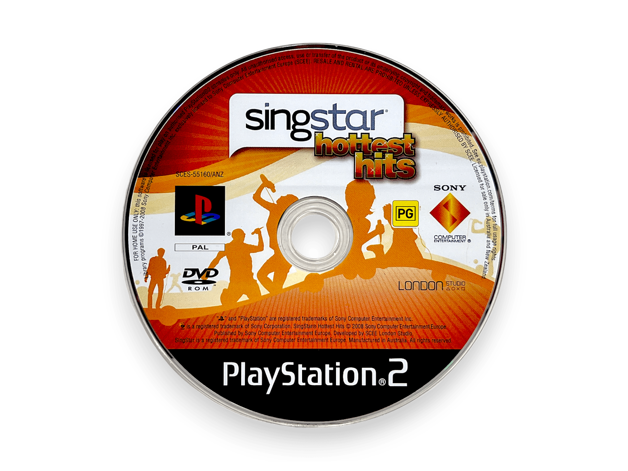SingStar: Hottest Hits (PS2). This preowned SONY PlayStation 2 game (PS2) game disc is in good condition with very mild disc surface imperfections only, and comes inside an empty blank case. Please note that the original case is NOT included.