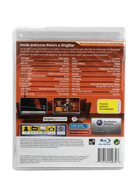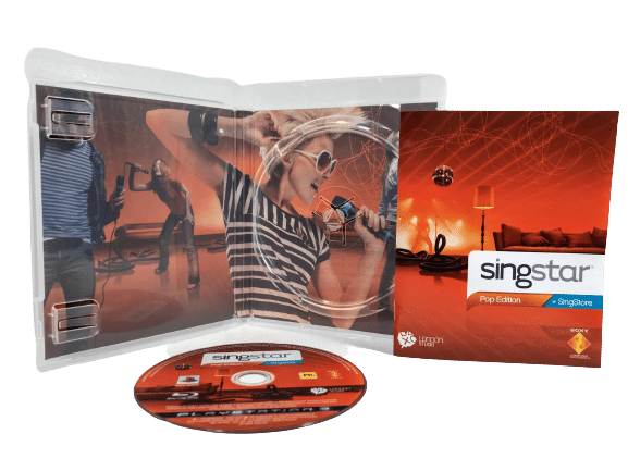 Excellent condition & 100% Complete with Contents: SINGSTAR POP EDITION for SONY PlayStation 3 / PS3. This preowned game is in superb condition and comes complete with original case, cover, manual / booklet, and game disc. Genuine UK print with the signature 12+ embedded in the cover art in place of the PG classification. A tidy and complete collector’s item.