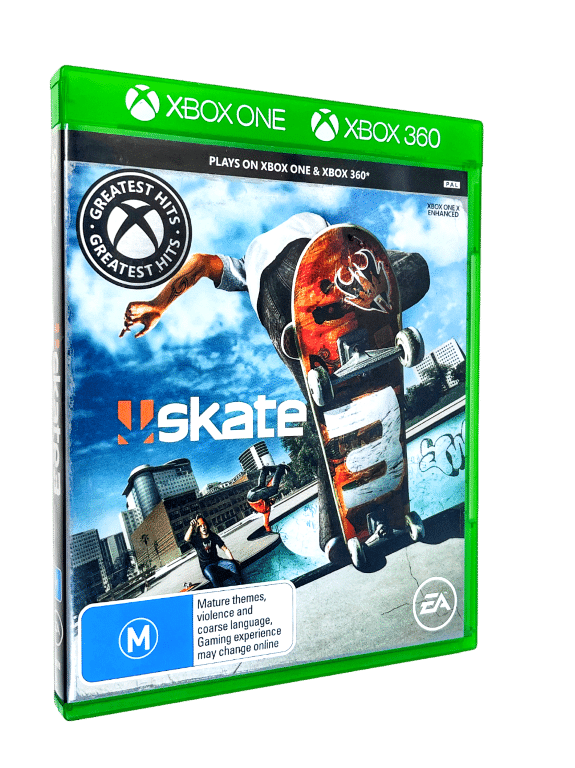 Authentic XBox One Edition in Excellent Condition & 100% Complete with Contents: SKATE 3 for XBox One (and this game also plays on XBox 360). This preowned game is in superb condition and comes complete with case, cover, and game disc. Promo card not included. OFFICIAL XBOX ONE EDITION. Refer photographs.